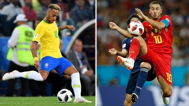 Suara.com - Laga antara Brasil vs Belgia di perempat final Piala Dunia 2018 untuk sementara memberikan hasil mengejutkan di babak pertama, setelah Neymar dkk tertinggal 0-2 dari Eden Hazard cs.