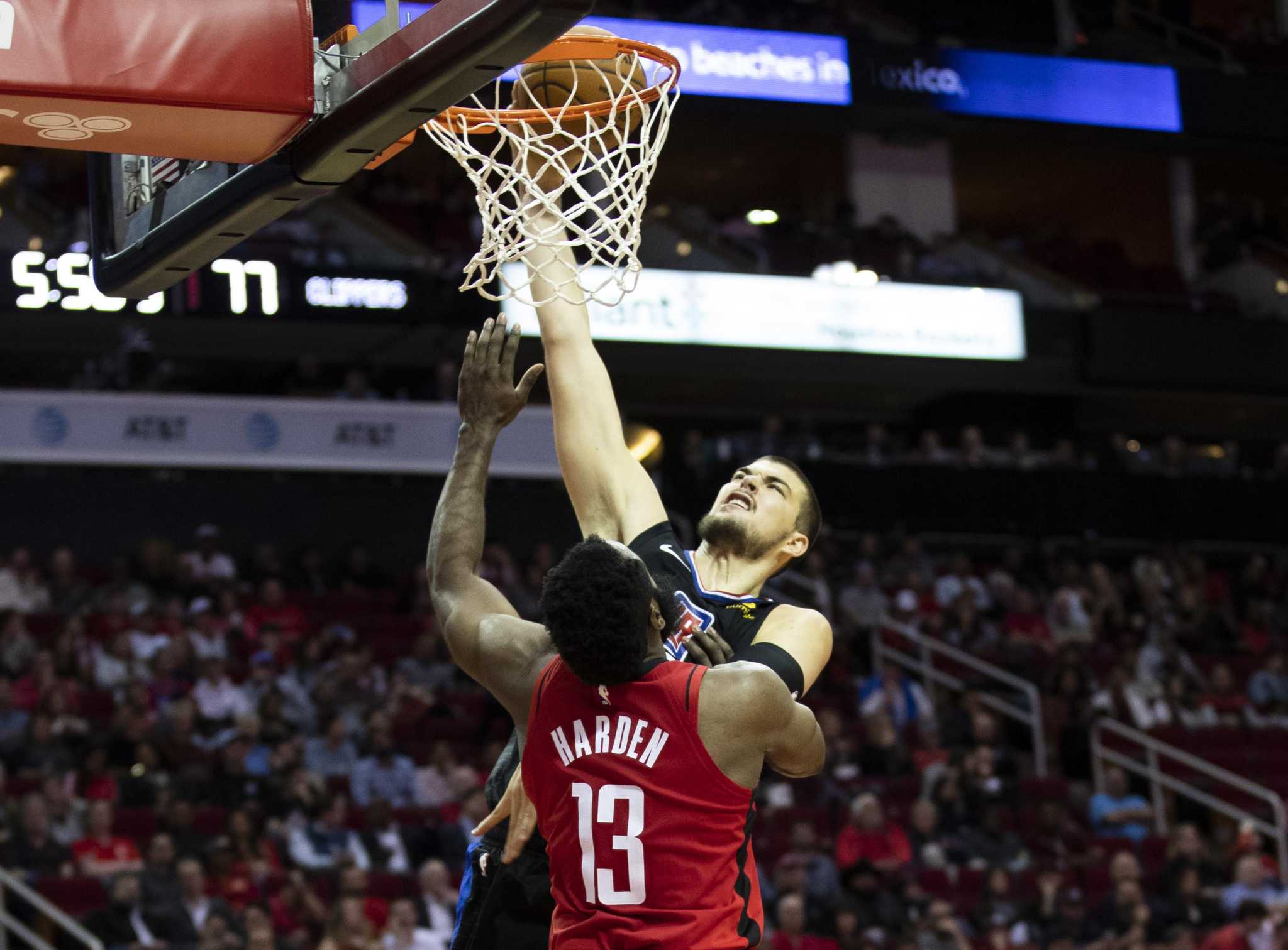 Harden contributed eight of those misses. He seemed out of sorts with the Clippers pressuring him with a sterling defensive effort, much of it led by former Rockets guard Pat Beverley.