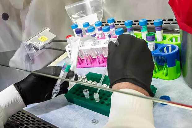 - A Humboldt County Public Health Laboratory employee processes a COVID-19 test.