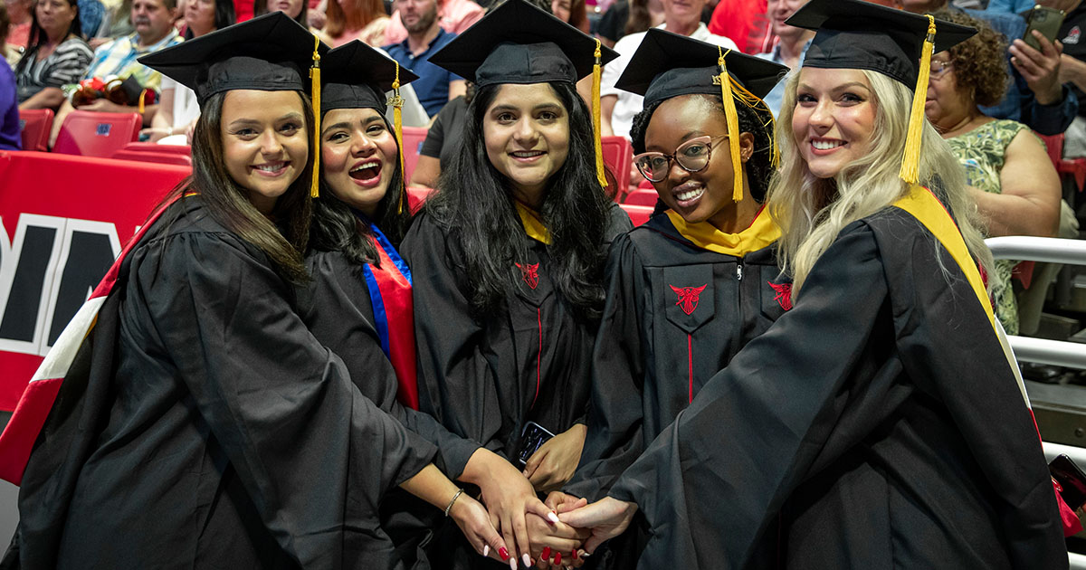 The first ceremony honored graduates from the R. Wayne Estopinal College of Architecture and Planning, College of Fine Arts, College of Sciences and Humanities, and Teachers College. The second ceremony honored Miller College of Business, College of Communication, Information, and Media, and College of Health graduates.
